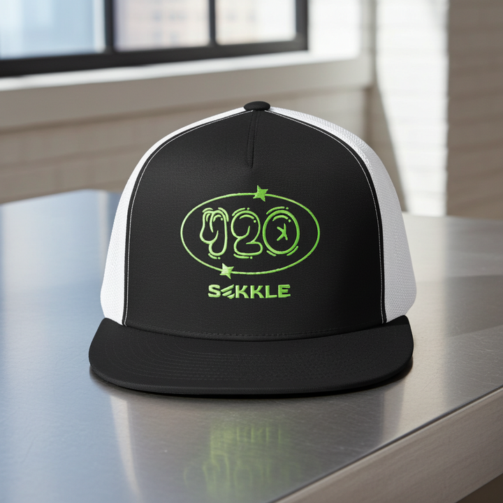 Classic 420 club trucker cap style with a cool fabric blend. • 47% cotton, 28% nylon, 25% polyester • Structured, five-panel, high profile • Flat bill • Snapback closure •...